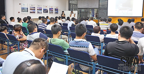 深圳市家具行業(yè)協(xié)會(huì)常務(wù)副會(huì)長(zhǎng)、深圳家具研究開發(fā)院副院長(zhǎng)關(guān)永康向山東企業(yè)代表介紹深家協(xié)