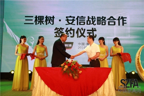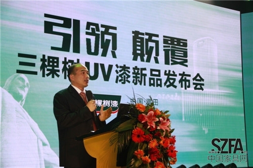 2014年7月24日16點(diǎn),“引領(lǐng)•顛覆”三棵樹(shù)UV漆新品發(fā)布會(huì),在三棵樹(shù)涂料股份有限公司多功能廳正式啟動(dòng)。三棵樹(shù)公司通過(guò)中外(中國(guó)/巴西,巴西Rochesa品牌為南美UV漆市場(chǎng)的第一品牌)合作,通過(guò)開(kāi)展技術(shù)合作、科研攻關(guān),推出具有健康高性能的UV漆新品,為三棵樹(shù)成為中國(guó)UV漆第一品牌打下良好基礎(chǔ)。應(yīng)邀出席的嘉賓有中國(guó)涂料工業(yè)協(xié)會(huì)長(zhǎng)孫蓮英女士、中國(guó)家具協(xié)會(huì)副理事長(zhǎng)兼秘書(shū)長(zhǎng)張冰冰女士、福建省家具協(xié)會(huì)副理事長(zhǎng)兼秘書(shū)長(zhǎng)沈潔梅女士、全國(guó)人大代表、三棵樹(shù)涂料股份有限公司董事長(zhǎng)洪杰先生、中國(guó)科技大學(xué)博士生導(dǎo)師國(guó)內(nèi)UV漆專家施文芳女士,巴西Roshesa S/A Tintas e Vernizes的技術(shù)專家Macro Antôio Beirão、安信地板公司總經(jīng)理盧偉健先生、中國(guó)百?gòu)?qiáng)家具廠代表、UV客戶、全國(guó)各地優(yōu)秀的三棵樹(shù)家具漆經(jīng)銷(xiāo)商代表、主流媒體10余家及三棵樹(shù)員工等共400余人。