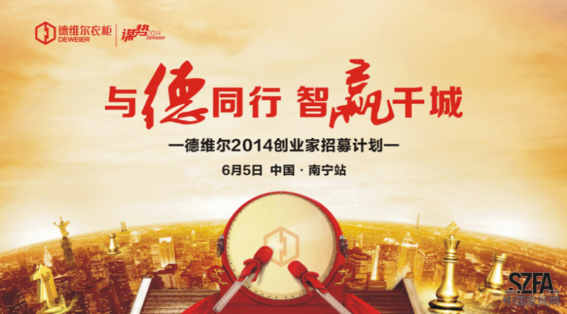 2014年6月5日,德維爾“與德同行,智贏千城”創(chuàng)業(yè)家招募計(jì)劃首站在廣西第一大城市、北部灣經(jīng)濟(jì)區(qū)核心城市、華南地區(qū)特大城市、中國(guó)東盟博覽會(huì)永久舉辦地——南寧圓滿召開(kāi),現(xiàn)場(chǎng)簽約加盟十多家,斬獲豐碩成果,宣告德維爾渠道深耕戰(zhàn)略首戰(zhàn)告捷,開(kāi)創(chuàng)了中國(guó)衣柜招商全面開(kāi)花的大時(shí)代。