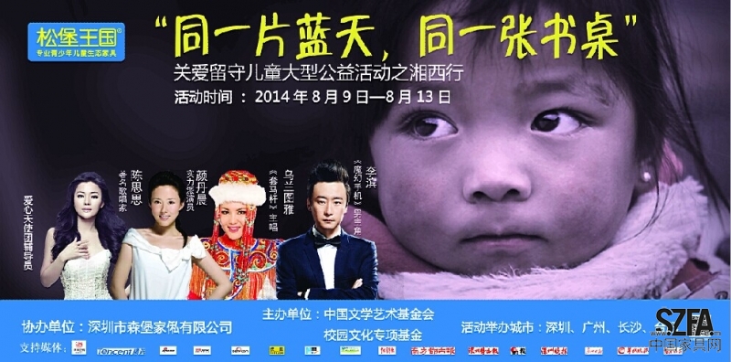 “同一片藍(lán)天,同一張書桌”大型公益活動,由深圳市松堡王國兒童家具全程贊助,攜手中國文學(xué)藝術(shù)基金會與校園文化藝術(shù)專項基金會共同主辦,關(guān)愛留守兒童大型公益活動之湘西行“愛心小天使”們即日啟程前往湘西參加愛心之旅。