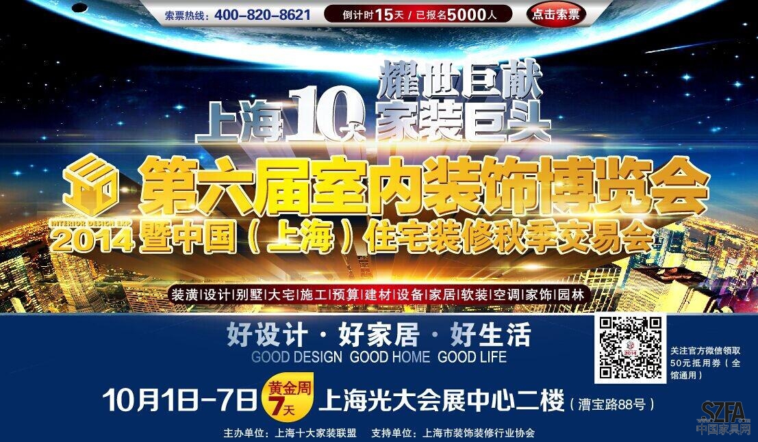 據(jù)悉,“2014第六屆室內(nèi)裝飾博覽會”將于2014年10月1日-7日在上海光大會展中心隆重開幕!本屆博覽會作為滬上最受信賴的大型家裝展會,由上海十大家裝聯(lián)盟主辦、《室內(nèi)裝飾》雜志承辦、同家傳媒全程策劃,并由上海市裝飾裝修行業(yè)協(xié)會認證、上海市消費者權(quán)益保護委員會全程監(jiān)督!
