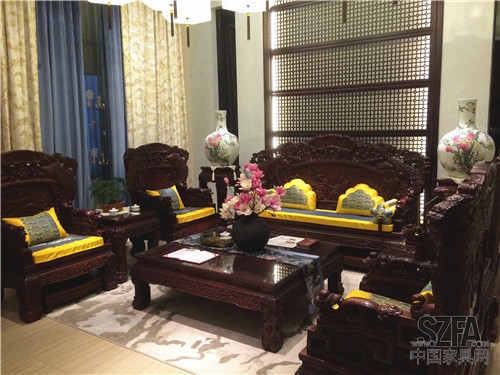 發(fā)布會上,“花開富貴”、“如意滿堂”、“纏枝蓮紋”、“吉韻仙嵐”、“精工造物”五大系列紅木家具新品閃亮登場。風(fēng)格典雅,造型美觀,每一件作品都獨具匠心,融入了祥利集團優(yōu)秀的家具設(shè)計理念和一線設(shè)計團隊多年來的設(shè)計經(jīng)驗。各具特色的紅木家具置身于古典與時尚交融的展廳中,為參展者展現(xiàn)了別樣的紅木風(fēng)情。并吸引了大量客商上前觀摩咨詢,成為本屆展會的一大亮點。