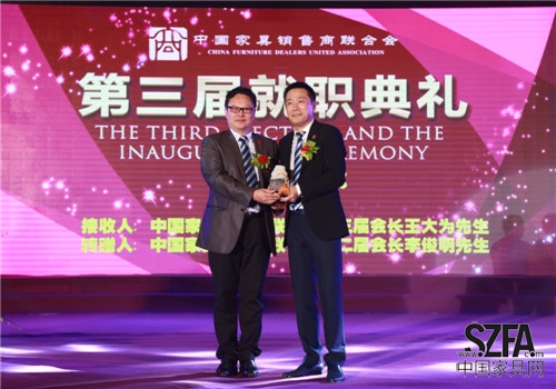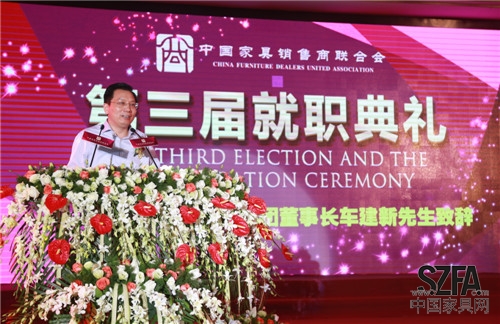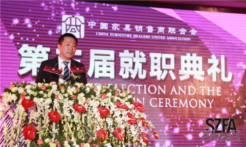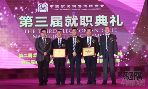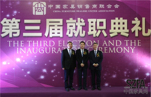 2014年9月4日,中國(guó)家具銷售商聯(lián)合會(huì)(以下簡(jiǎn)稱“家商聯(lián)”)第三屆就職典禮在東莞厚街名家具展3號(hào)館二樓宴會(huì)廳隆重舉行。北京克拉斯家居集團(tuán)董事長(zhǎng)王大為先生當(dāng)選新任會(huì)長(zhǎng),河北創(chuàng)典居家具董事長(zhǎng)趙建軍先生當(dāng)選監(jiān)事長(zhǎng),郭新文先生當(dāng)選秘書長(zhǎng),帶領(lǐng)全體執(zhí)行會(huì)長(zhǎng)宣誓就職。