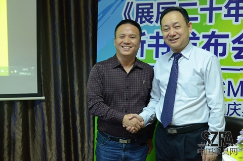 展辰涂料輪值總裁熊星(右)與景初總經(jīng)理劉永飛(左)握手
