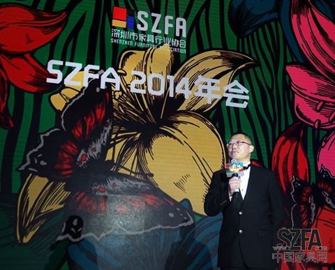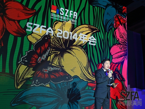 尤國忠會長代表深圳家協(xié)做總結(jié)發(fā)言,并與臺上嘉賓齊齊恭祝來賓新年快樂,寄語2015年深圳家具再創(chuàng)輝煌。