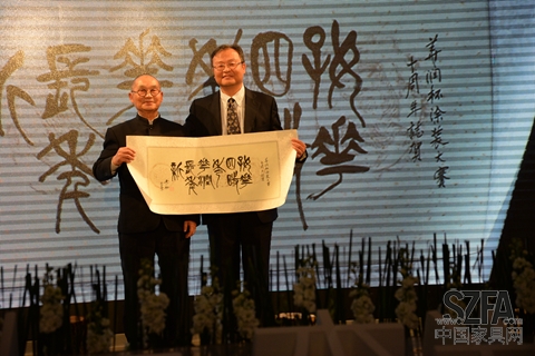在第11屆華潤杯家具涂裝設計大賽啟動儀式結束后,葉漢慈先生發(fā)表了題為“目標在前,腳印在后”的簡短演講,擲地有聲,意義非凡。胡景初教授、黃偉業(yè)主席分別為華潤杯大賽主辦方贈送親筆字幅,對華潤杯大賽給予了高度的評價和期望。最后,威士伯工業(yè)木器漆亞洲區(qū)董事總經(jīng)理于讓波先生為五位特邀嘉賓贈送了“時尚涂裝白皮書—第1-10屆華潤杯大賽回顧特刊”一書(精裝限量2015年版)作為紀念。至此,第1-10屆華潤杯家具涂裝設計大賽總結回顧活動劃上圓滿的句號。