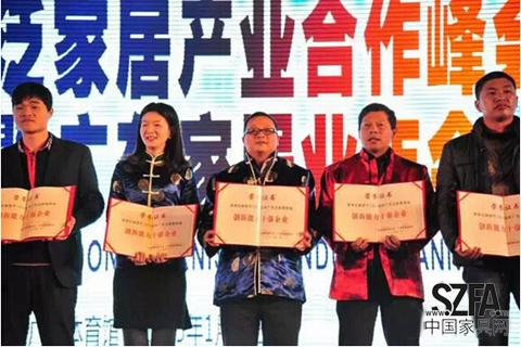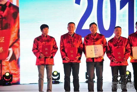 森堡家私董事長郭向陽(左二)上臺領(lǐng)獎
