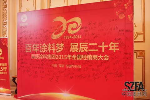 開疆拓土,成就傳奇。傳奇永遠是成功的耀金石,展辰在神州大地開枝散葉,華枝春滿,閃耀木器漆行業(yè)。當(dāng)然這份榮耀也屬于堅守展辰涂料的經(jīng)銷商、供應(yīng)商們,別出心裁的“盟約儀式”上,20位代表在“展辰樹”上烙下璀璨的“花朵”,共同成就展辰涂料的五彩斑斕。