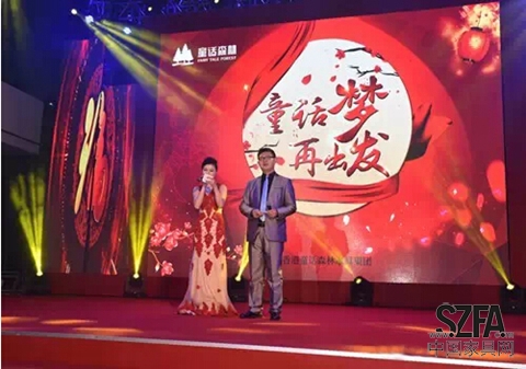 香港童話森林執(zhí)行董事黃東鵬先生上臺(tái)致新年賀詞。從經(jīng)濟(jì)新常態(tài)、新中式、營銷模式變革三方面著重詮釋了“童話夢(mèng)再出發(fā)”。