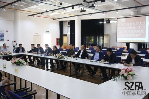 參觀完基地,雙方舉行了簡短而深刻的座談。楊慧市長代表衡水市人民政府感謝深圳家協(xié)的熱情接待,并傳達了學習交流并需求家具產(chǎn)業(yè)合作的意向。