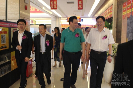 領(lǐng)導(dǎo)參觀“票莊”惠州連鎖店(左起:深圳亞太傳媒股份有限公司總經(jīng)理、騰訊網(wǎng)•亞太家居董事長(zhǎng)駱凌巍,