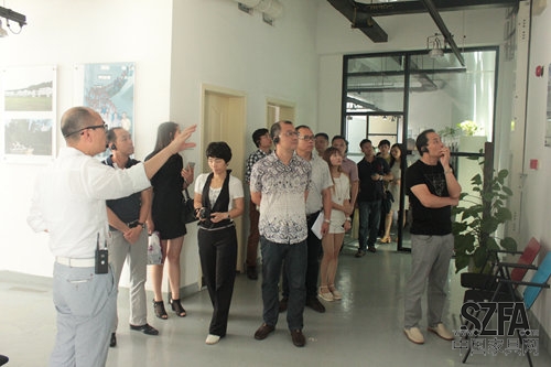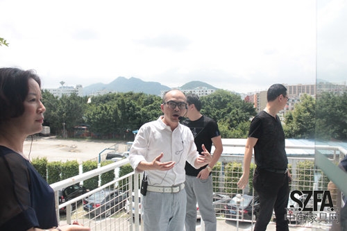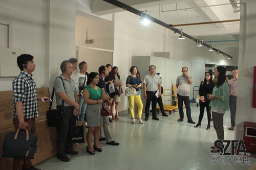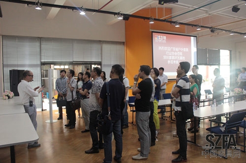 深圳市家具行業(yè)協(xié)會(huì)常務(wù)副會(huì)長(zhǎng)關(guān)永康帶領(lǐng)嘉賓參觀大樓并介紹