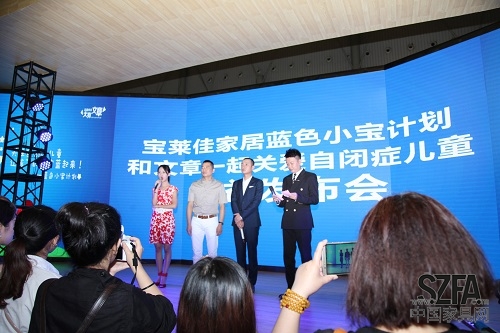 2015年7月3日,成都新世紀(jì)會展中心3號館,成都金度家具有限公司(旗下品牌寶萊佳家居,以下簡稱寶萊佳)藍(lán)色小寶計(jì)劃——和文章一起關(guān)愛自閉癥兒童公益發(fā)布會在此舉行。