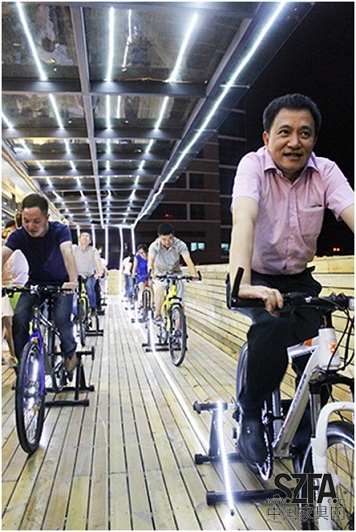 作為80、90后這群"城市奮斗者"的小伙伴,"鳳凰筑家"廈門體驗館開業(yè)儀式依然不走尋常路。沒有隆重的剪彩、舞龍舞獅,砸金蛋儀式,也沒有花哨的歌舞開場,此次啟動儀式完全貼合了受眾定位及互聯(lián)網(wǎng)思維。在體驗館寬敞的露臺上,十輛被協(xié)會領(lǐng)導(dǎo),供應(yīng)商代表,員工代表,客戶代表等嘉賓快速蹬起的自行車,產(chǎn)生電流,白色的光帶依次從腳底亮起,一直沖向頂層,點亮了鳳凰筑家的logo。