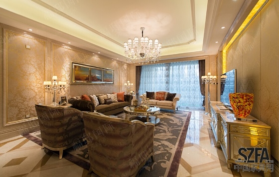 頂級(jí)住宅的內(nèi)在價(jià)值,在于精英圈層生活形態(tài)的還原與升級(jí)。武林壹號(hào)塑造都市核心生活的最后一個(gè)步驟,就是邀請(qǐng)了最專業(yè)的軟裝設(shè)計(jì)團(tuán)隊(duì)——福邸國際家居打造官方樣板房,將安居于運(yùn)河之畔,傲立于城市之巔的生活形態(tài)呈現(xiàn)于人前。落地窗前,水晶燈下,經(jīng)典的卷軸型扶手沙發(fā)組與點(diǎn)睛的一對(duì)簇狀高靠背休閑椅將開闊的客廳攬?jiān)趹阎校c石材拼花的地面、充滿藝術(shù)感的壁布共同渲染出奢華的底色。金屬質(zhì)感,鏡面拼花效果的電視柜、茶幾與畫框兩兩呼應(yīng),使典雅、高貴的氛圍彌漫在客廳的每一個(gè)角落。