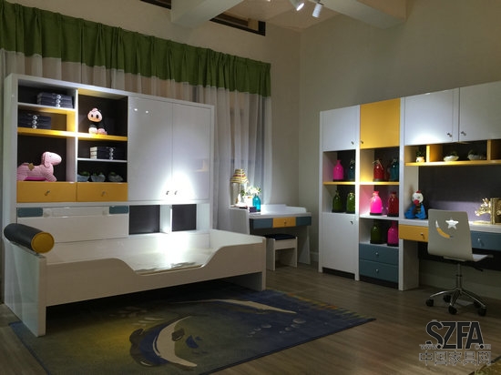 在此理念指導(dǎo)下,值得期待的是帝標(biāo)對板式家居的突破。在實(shí)木家具大行其道的趨勢下,如何結(jié)合四川作為板式家具生產(chǎn)集群的產(chǎn)業(yè)優(yōu)勢,更迅捷的適應(yīng)迭代快速的大眾市場成為帝標(biāo)必須思考的問題——針對此,“混搭”成為解決方案之關(guān)鍵詞。跳出板式家具的傳統(tǒng)模式,通過高矮、顏色、材質(zhì)和表達(dá)方式的”混搭“,形成不同風(fēng)格的標(biāo)準(zhǔn)模板,給予消費(fèi)者更為開發(fā)無限的選擇空間。從展會(huì)現(xiàn)場來看,這種混搭,的確已經(jīng)顛覆傳統(tǒng)家具搭配,解決了過去單一色彩、符號裝飾下的沉悶感,因而極具設(shè)計(jì)沖擊力。