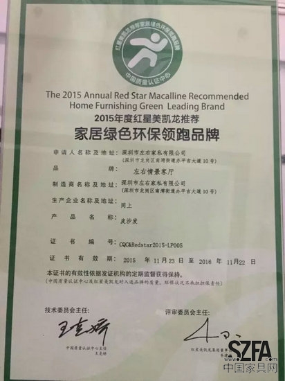 左右沙發(fā)不僅在設計領域與銷售業(yè)績上遙遙領先,作為紅星美凱龍百強合作伙伴,左右還被紅星美凱龍推薦、中國質(zhì)量認證中心認證為家居綠色環(huán)保領先品牌。