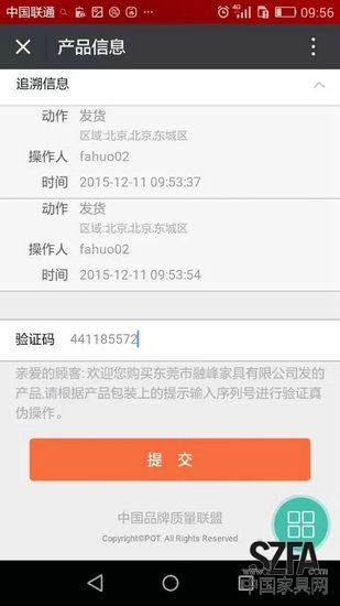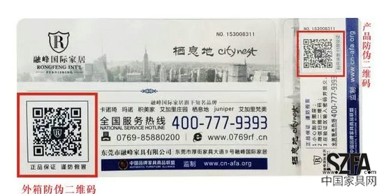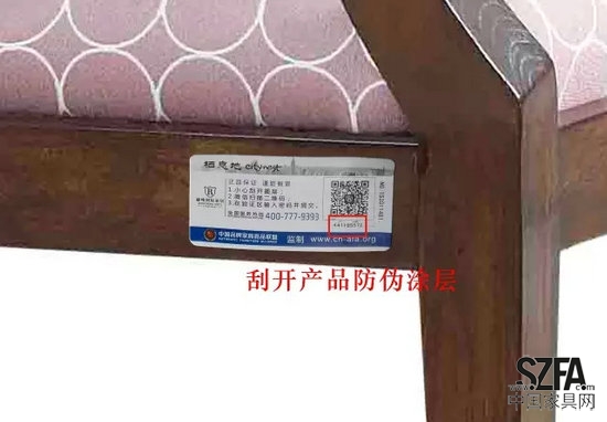 產(chǎn)品防偽驗(yàn)證碼 貼在家具產(chǎn)品背面右上角。