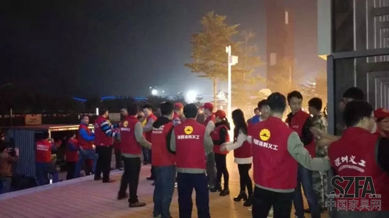 展辰義工隊(duì)19點(diǎn)到達(dá)現(xiàn)場(chǎng),時(shí)刻準(zhǔn)備著聽(tīng)候組織的安排。19點(diǎn)20分,我們的第一波任務(wù)來(lái)了,為了方便手機(jī)充電,我們用恒大冰泉擺了個(gè)堆頭,大伙一個(gè)接著一個(gè),從倉(cāng)庫(kù)把水搬到有插孔的地方三層疊放,雖然天氣有點(diǎn)寒冷,但是熱情的義工朋友們,分分鐘把事辦好了。