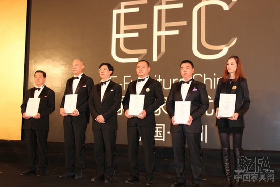 深圳家具研究開發(fā)院院長許柏鳴院長(左三)為入圍企業(yè)頒發(fā)資格證