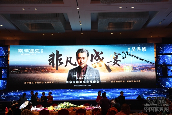 2016年1月10日,南洋迪克家居“非凡盛宴”商務(wù)年會在西安舉行。南洋迪克品牌形象大使吳秀波親臨現(xiàn)場,這是吳秀波代言南洋迪克之后首次亮相古城西安。本次年會上南洋迪克正式發(fā)布了兩款旗艦新品——新北歐時尚主義實(shí)木家具“金木凡品”和新美輕奢主義實(shí)木家具“格倫代爾”。同時解讀了南洋迪克2016年的戰(zhàn)略發(fā)展規(guī)劃。