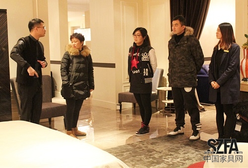 △福邸家居設(shè)計(jì)師帶領(lǐng)賓客展廳,體驗(yàn)產(chǎn)品