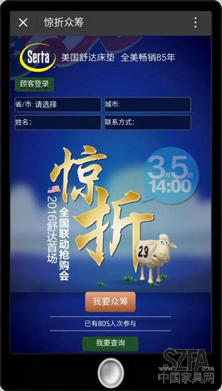 連續(xù)4年榮膺全美銷(xiāo)量第一的美國(guó)舒達(dá)床墊,2月19日第一次在微信眾籌床墊。全國(guó)240城市齊齊聯(lián)動(dòng),消費(fèi)者積極響應(yīng),在家具行業(yè)內(nèi)掀起了猴年第一股小旋風(fēng)。