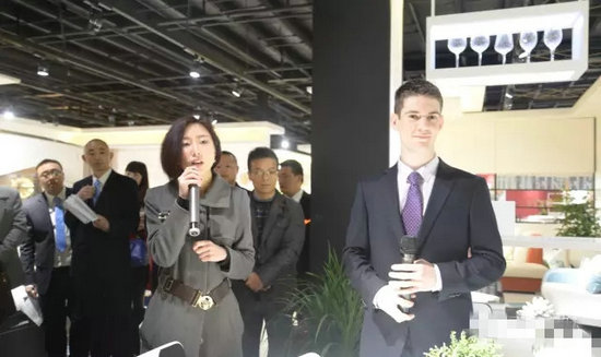 3月1日,得一家私合作伙伴Microfibres公司指派年輕帥氣的銷售總監(jiān)Mr.Ethan Degroot和中國(guó)總代理高小姐來(lái)到得一“春季訂貨會(huì)”現(xiàn)場(chǎng),進(jìn)行得一沙發(fā)“七防”面料的知識(shí)詳解,氣氛一度飆升。