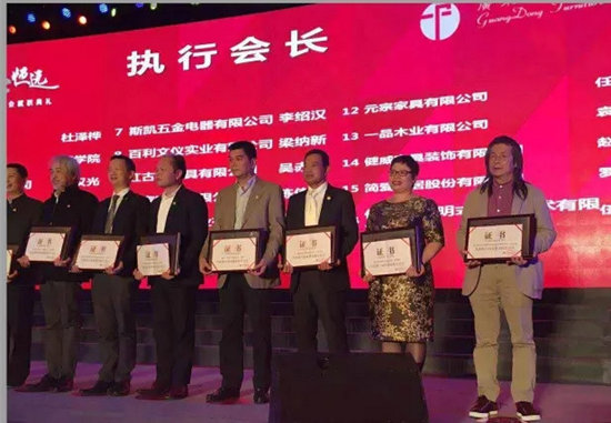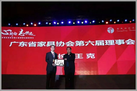 廣東省家具協(xié)會會長王克接受會長牌匾
