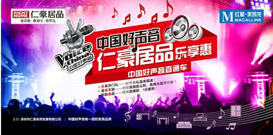 2015年3月,仁豪集團再一次重磅出擊,聯(lián)手家居物業(yè)龍頭紅星美凱龍開展品牌推廣月活動,通過以仁豪戰(zhàn)略合作伙伴——中國好聲音落地活動為載體,借助紅星強大的線上、線下資源,在全國32大城市45家紅星家居賣場,集中引爆“仁豪居品”形象。加強跨界合作,推動家居行業(yè)提升到一個新的高度。