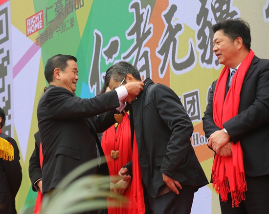 尤國(guó)忠親手為嘉賓戴上答謝禮