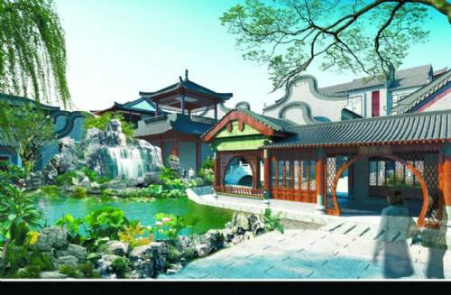 紅博城里的江南園林風格建筑。