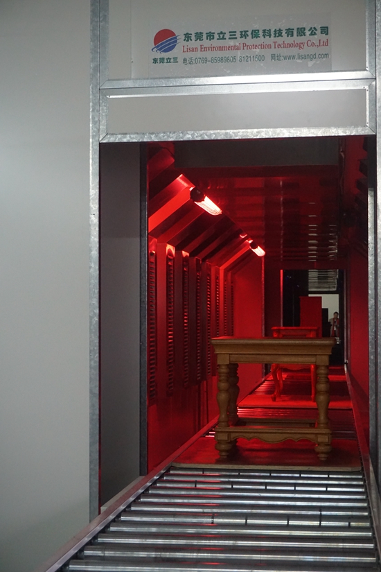 在參觀大寶化工智能涂裝生產(chǎn)線的過(guò)程中,我們發(fā)現(xiàn),大寶智能化涂裝測(cè)試線主要分為:智能傳輸系統(tǒng)、自動(dòng)混氣噴涂系統(tǒng)、吊線水性靜電噴涂系統(tǒng)、干燥系統(tǒng)及污水循環(huán)系統(tǒng)。其中以干燥系統(tǒng)為核心,分為智能微波干燥機(jī)、納米電解干燥劑、電磁波紅外線干燥機(jī)及光固化(UV)干燥機(jī),可以滿足家具廠客戶實(shí)現(xiàn)水性家具涂裝安全、快捷干燥等需求。