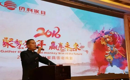 當(dāng)晚,僑利家具還舉行了《聚勢猴年•贏享未來》答謝晚宴。首先由僑利家具董事總經(jīng)理潘柱鏡、僑利家具副總經(jīng)理粟浩鋼等公司高層分別發(fā)表致辭。僑利家具董事總經(jīng)理潘柱鏡表示,僑利家具將2016年定義為“新十年、新夢想、新跨越的第一步”,以“穩(wěn)中求進(jìn)、完善治理、創(chuàng)新突破”為經(jīng)營指導(dǎo)思想,“專心、專業(yè)、專注”為行動指南,持續(xù)對整個運營體系進(jìn)行優(yōu)化和升級,力爭在三年內(nèi)成為大佛山青少年家具第一名,五年內(nèi)成為全國青少年家具標(biāo)桿企業(yè)。僑利家具副總經(jīng)理粟浩鋼稱,為了“百年僑利”這個大夢想,2016年將是一個里程碑的改革年,公司將以各種改革來降低運營成本,把利好讓給經(jīng)銷商為其在市場更具有競爭力。2016年“我的e家”品牌旗下又推出二個青少年全實木新產(chǎn)品,分別是最具性價比的北歐小屋系列與最具投資價值的e家松木系列,同時他強調(diào)2016年以真正落地式的營銷服務(wù)來征戰(zhàn)市場服務(wù)經(jīng)銷商!