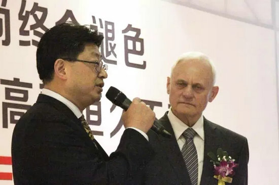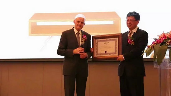 四季酒店,KLER慶典晚宴現(xiàn)場(chǎng),Mr.Piotr Kler先生向劉健華先生贈(zèng)送了中國地區(qū)總代理商授牌。