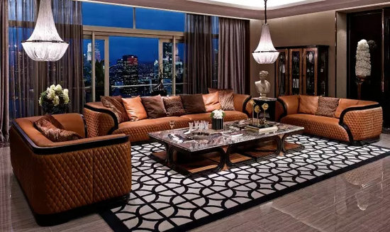 造型簡潔卻透露出具有國際范的奢華,營造出大氣融洽的客廳氛圍。