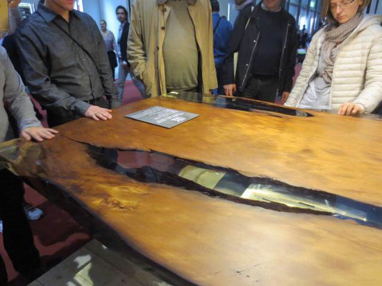 ▲實木家具品牌R1920旨在把實木產(chǎn)品做到極致,2015米蘭展會上R1920用一張實木與樹脂結(jié)合的大桌面來吸引眼球。