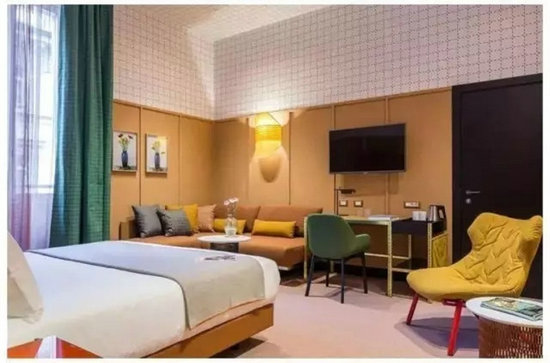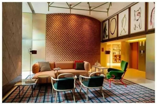 ▲酒店大堂及客房中的家具搭配也大量融入了年輕活力的色彩及造型,并將不少設計出彩的家具單品混搭,處處給人帶來驚喜。這些家具大多來自Cassina、Moroso等家具品牌大咖,其中有不少是全球著名建筑工業(yè)大師的經(jīng)典設計,更有不少是Patricia Urquiola本人的家具設計作品。