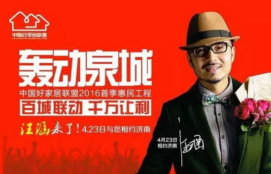 4月23日中國好家居聯(lián)盟《轟動泉城》-- 2016年首季惠民工程在濟南主會場成功啟動,中國好家居聯(lián)盟十五家品牌企業(yè)代表相約濟南奧體中心,為濟南業(yè)主朋友打造一場裝修饕餮盛宴,特邀湖南衛(wèi)視著名主持人汪涵現(xiàn)場主持,現(xiàn)場人氣爆棚。