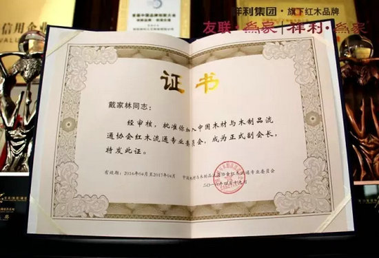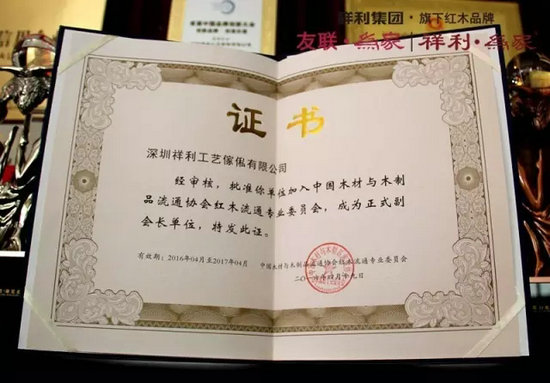 中國(guó)木材與木制品流通協(xié)會(huì)紅木流通專業(yè)委員會(huì)副會(huì)長(zhǎng)單位證書、副會(huì)長(zhǎng)證書