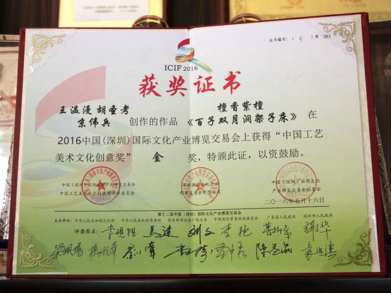 榮獲2016第十二屆深圳文博會“中國工藝美術(shù)文化創(chuàng)意獎(jiǎng)——金獎(jiǎng)”