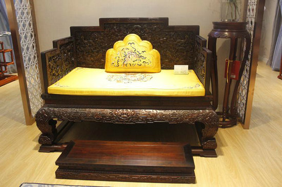 高居于殿堂臺座之上的寶座為皇權(quán)的象征,是中國家具等級至高的器具。正龍大寶座用上乘珍貴大紅酸枝木精心雕刻,紋理細(xì)致緊密,光澤深邃古樸。因用材厚實(shí),龍的圖案采用了難度很高的高浮雕技法,使紋飾浮凸,立體感十足。