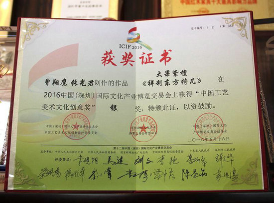 榮獲2016第十二屆深圳文博會“中國工藝美術(shù)文化創(chuàng)意獎(jiǎng)——銀獎(jiǎng)”