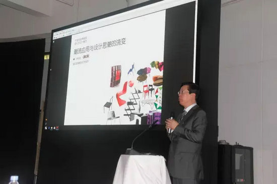 ▲許柏鳴院長正在為大家講解潮流應(yīng)用與設(shè)計(jì)思潮的流變
