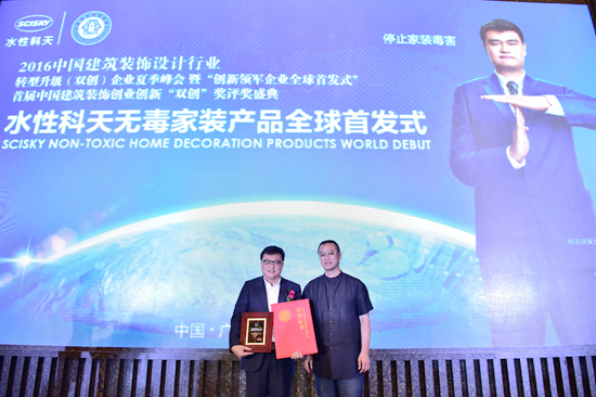 中裝協(xié)副秘書長給水性科天頒發(fā)“綠色建材最具影響力企業(yè)”獎