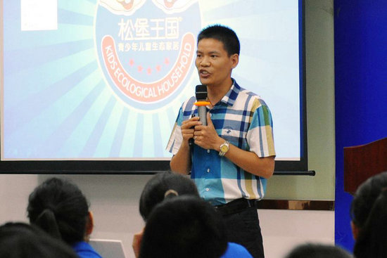 松堡王國(guó)客服部經(jīng)理李坊遠(yuǎn)講述產(chǎn)品知識(shí)