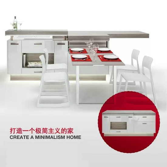 抽拉式餐臺(tái)設(shè)計(jì)大大減少空間占用面積,無需其他配件即可實(shí)現(xiàn)自支撐,用餐結(jié)束后即可將餐桌收回到柜體中,一切都那么井然有序。