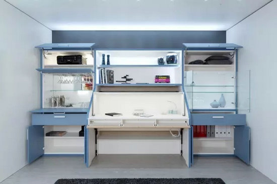 工作臺(tái)與臥床無縫切換的設(shè)計(jì)可謂技驚四座,沉穩(wěn)工作的氣氛一秒切換成休閑娛樂的場(chǎng)所,將空間的簡約利用發(fā)揮到極致。