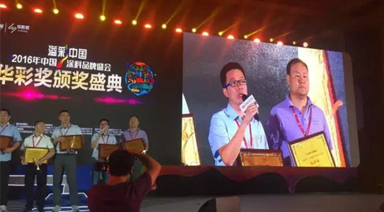 2016年7月7日,“溢彩中國”2016年中國涂料品牌盛會(huì)暨“華彩獎(jiǎng)”(第十屆)影響力品牌評選頒獎(jiǎng)盛典,在北京隆重揭曉。