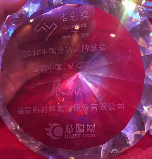 榮耀中國·鉆石品牌,展辰榮獲2016涂料品牌盛會(huì)鉆石品牌獎(jiǎng)。作為“十佳涂料品牌”評選活動(dòng)的華麗轉(zhuǎn)身,“溢彩中國”2016年中國涂料品牌盛會(huì)暨“華彩獎(jiǎng)”(第十屆)影響力品牌評選承前啟后,將持續(xù)代表中國涂料界最高榮譽(yù)。展辰連續(xù)十年榮獲“十佳”品牌,此次獲得鉆石品牌獎(jiǎng),可算水到渠成,實(shí)至名歸。